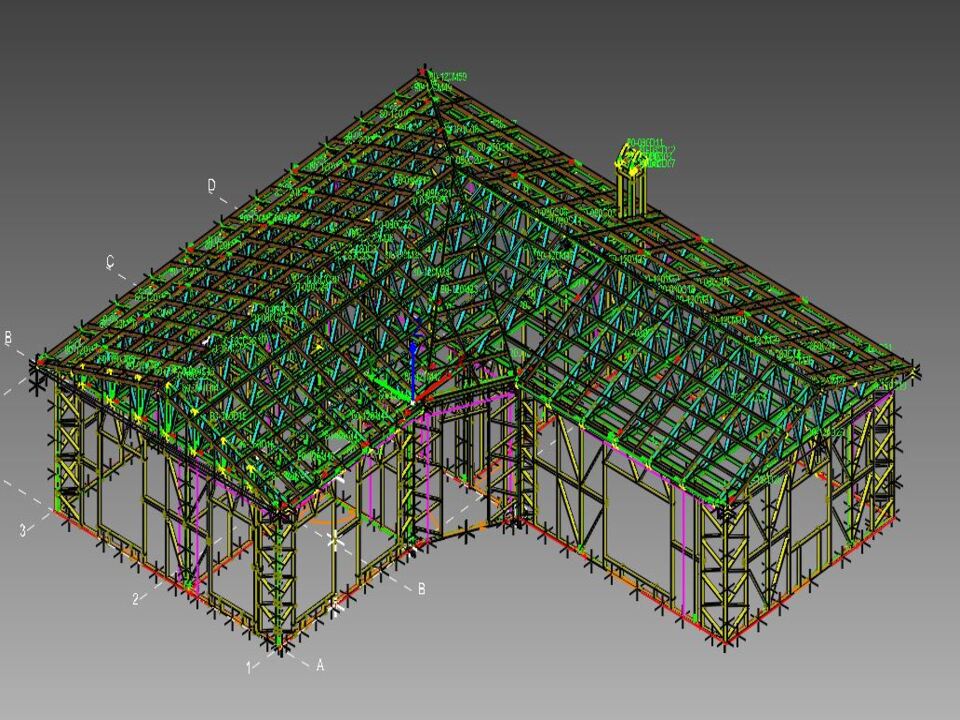 Projelerimizin tasarımlarında çatı sistemi ayrı bir önem taşır. Çatı makasları, aşıklar ve taşıyıcı elemanlar, yükleri güvenli şekilde aktarmak üzere detaylı olarak modellenir. Çatı eğimi, kaplama türü ve taşıyıcı sistem arasındaki uyum tasarım aşamasında netleştirilir. Bu sayede hem estetik hem de dayanıklı bir çatı sistemi elde edilir. Dijital ortamda hazırlanan çelik çatı tasarımları, sahadaki montaj sürecini hızlandıran önemli bir avantaj sunar.