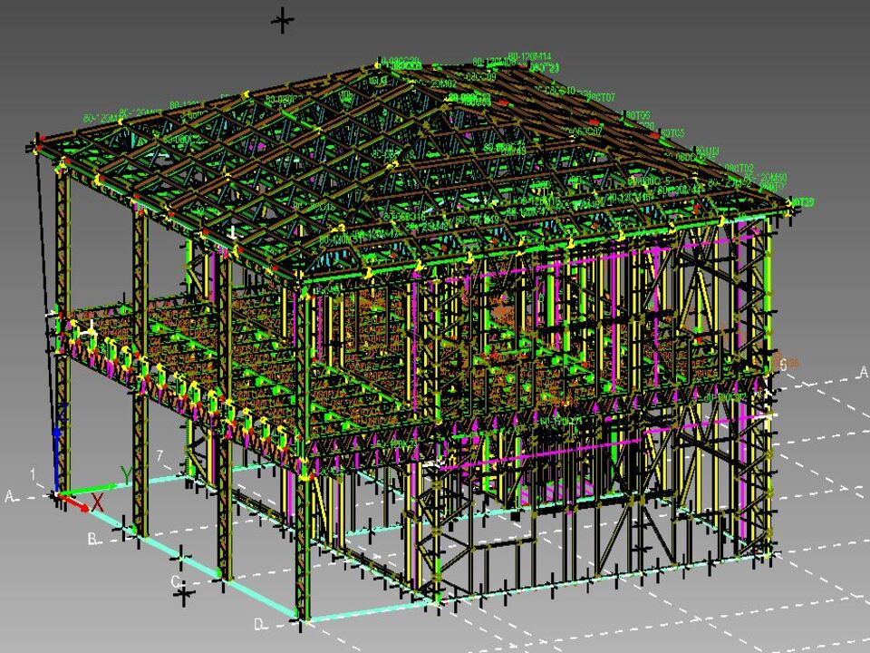 Projelerimizin tasarım süreci, hafif çelik yapı sistemlerinin tüm teknik gerekliliklerini karşılayacak şekilde detaylı olarak planlanır. Yapının taşıyıcı sistemi, kat planları, açıklıklar ve çatı kurgusu dijital ortamda üç boyutlu olarak modellenir. Bu aşamada kolon, kiriş, duvar ve çatı elemanlarının konumları netleştirilerek yapısal bütünlük sağlanır. Hazırlanan çelik yapı tasarımları, sahada uygulanacak sistemin birebir karşılığı olacak şekilde oluşturulur ve üretim öncesi tüm detaylar kontrol edilir.
