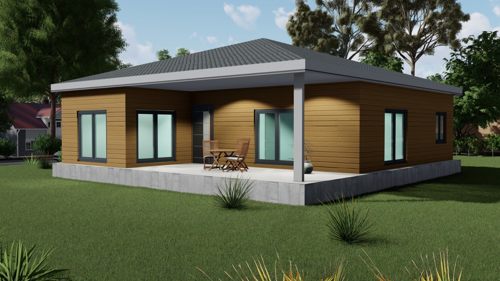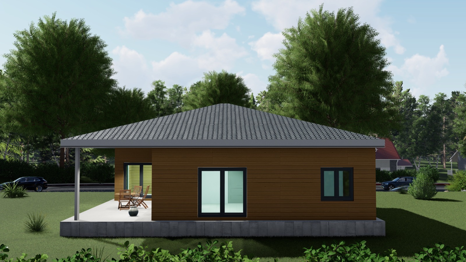 Veranda, RC-1124’ün en güçlü özelliklerinden biridir. 21,5 m² büyüklüğündeki bu alan, yılın büyük bölümünde keyifle kullanılabilecek bir açık yaşam mekânı sunar. Ailenizle dışarıda yemek yeme, misafir ağırlama veya gün sonunda dinlenme için ideal ortamı oluşturur.