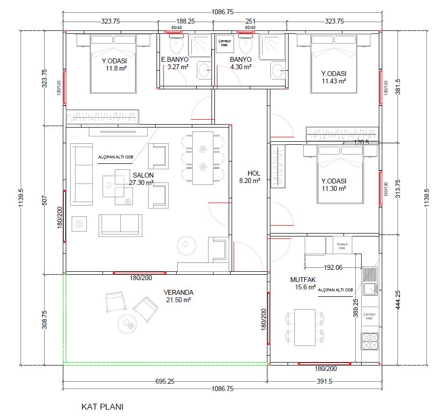 Model 3+1 yerleşimiyle tüm odalarda optimum kullanım sunar. Üç ayrı yatak odası hem çocuklu aileler hem de misafir ağırlamayı seven kullanıcılar için avantaj sağlar. Oda konumları mahremiyeti desteklerken salonun merkezde konumlanması ev içi iletişimi güçlendirir.
