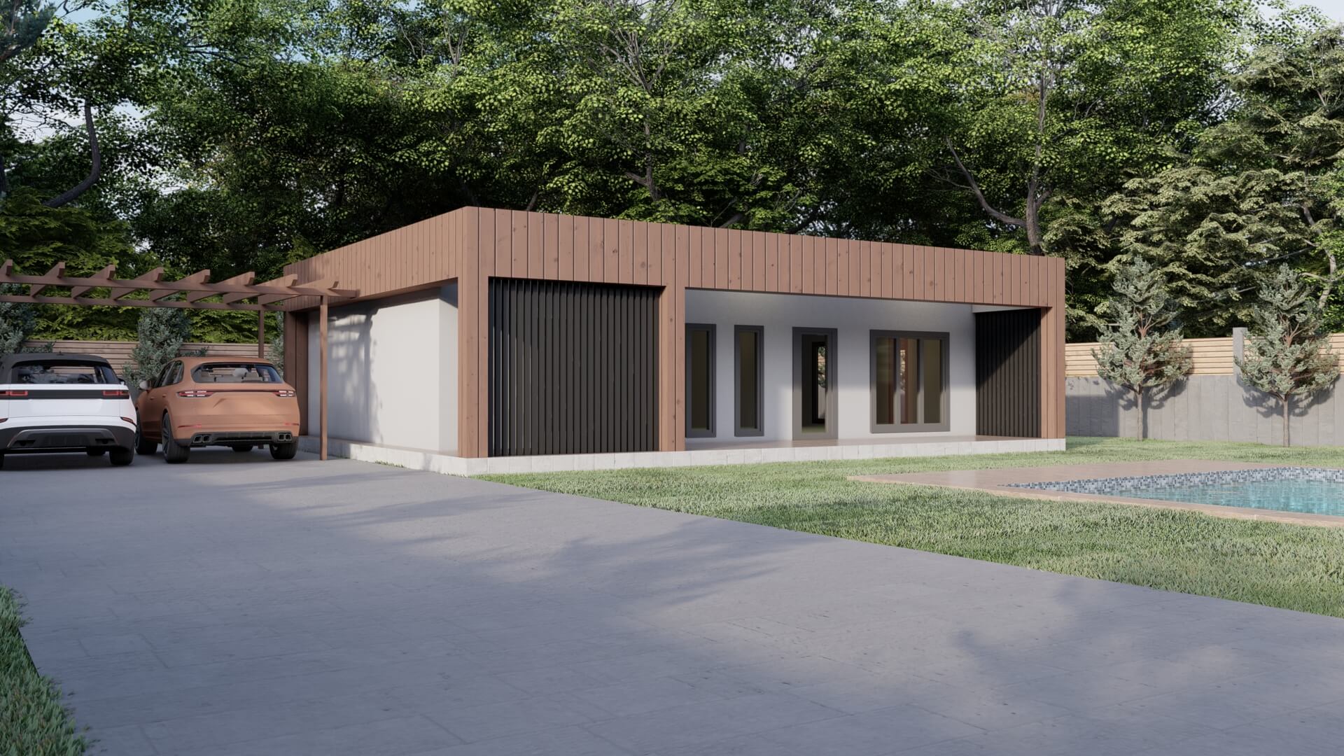 Dış cephede kullanılan dikey ahşap kaplamalar, mat tonlardaki duvarlar ve lineer gölgelik detayları RC-1130’a çağdaş bir duruş kazandırıyor. Geniş cam yüzeyler hem doğal ışığı içeri davet ediyor hem de iç mekânla dış alan arasında güçlü bir bağ kuruyor.