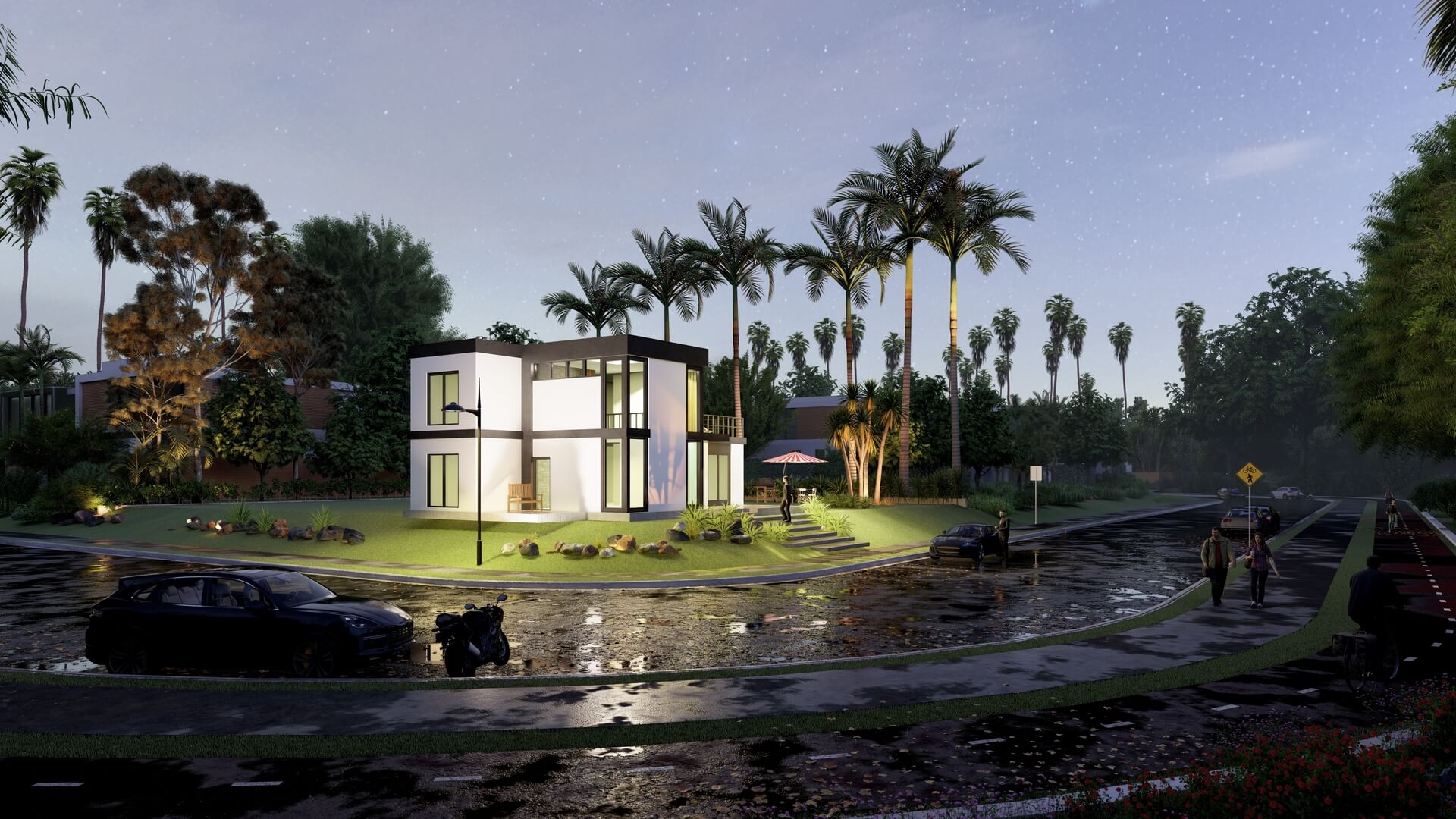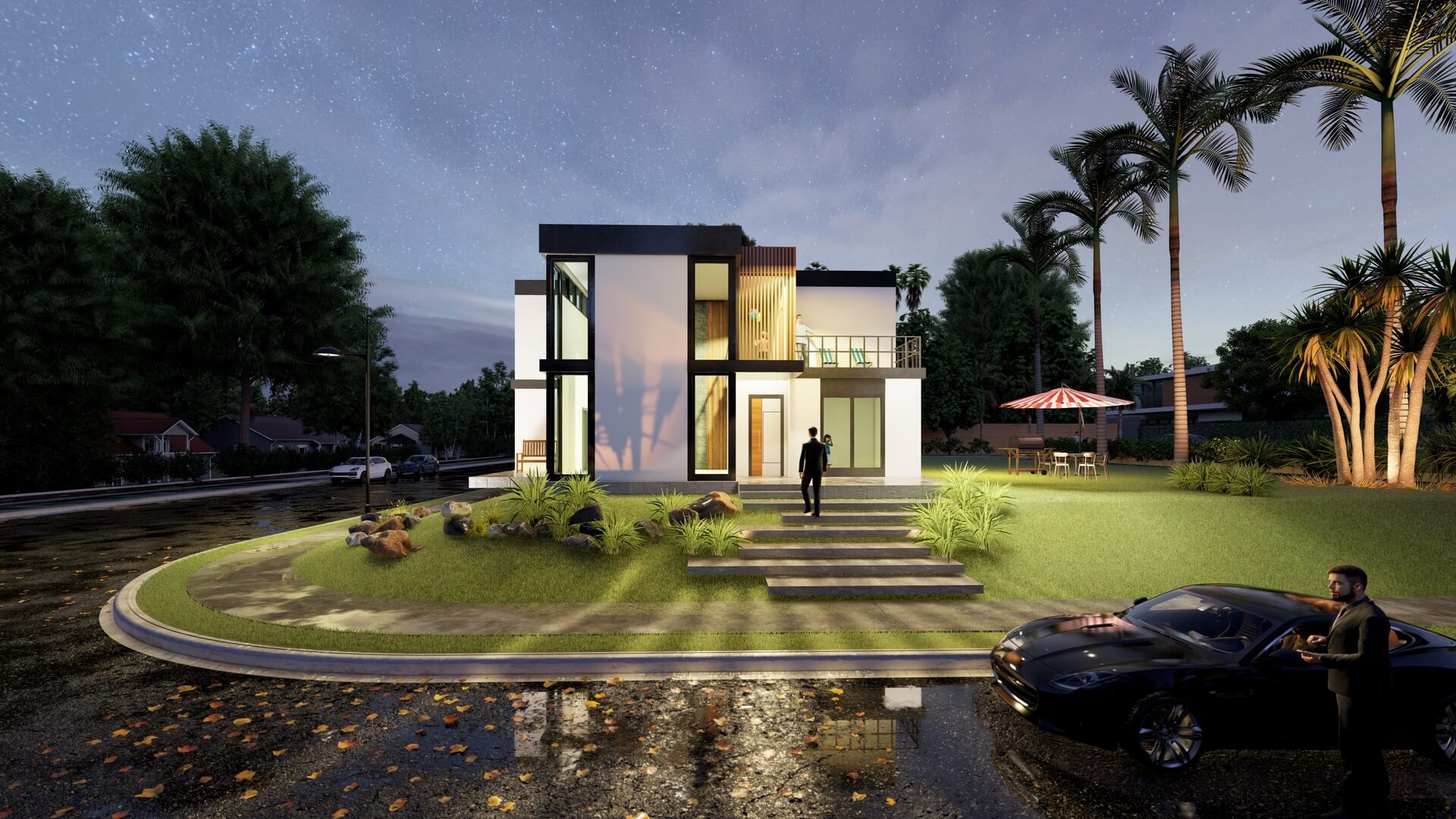 RC-2174, hem mimarisi hem de çevre düzeniyle geniş kullanım imkânları sağlar. Teras, veranda ve geniş bahçe alanı; barbekü, açık hava oturma düzeni ve aile aktiviteleri için ideal bir atmosfer sunar. Yapının dış aydınlatma tasarımı, özellikle akşam saatlerinde modern çizgileri daha da belirgin hâle getirerek projeye prestijli bir villa görünümü kazandırır.