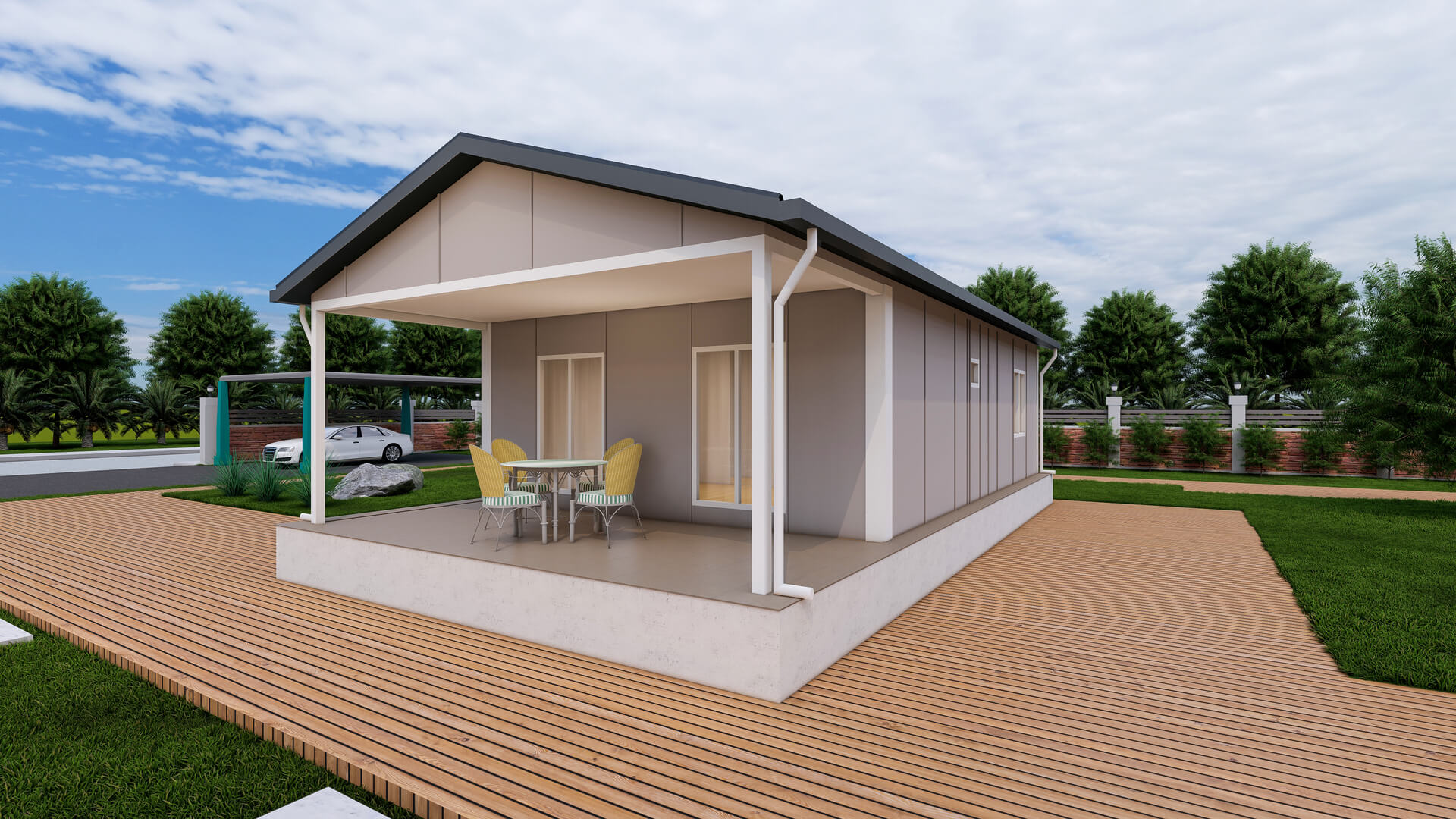 67 m² geniş kullanım alanı, büyük veranda tasarımı, modern dış cephe görünümü ve iki fonksiyonel yatak odası ile RP-1067 hem estetik hem de konfor açısından beklentileri karşılayan bir ev modelidir. Hafif çelik yapının sunduğu mukavemet, hızlı kurulum süreci ve uzun ömür sayesinde güvenli bir yatırım fırsatı sunar.