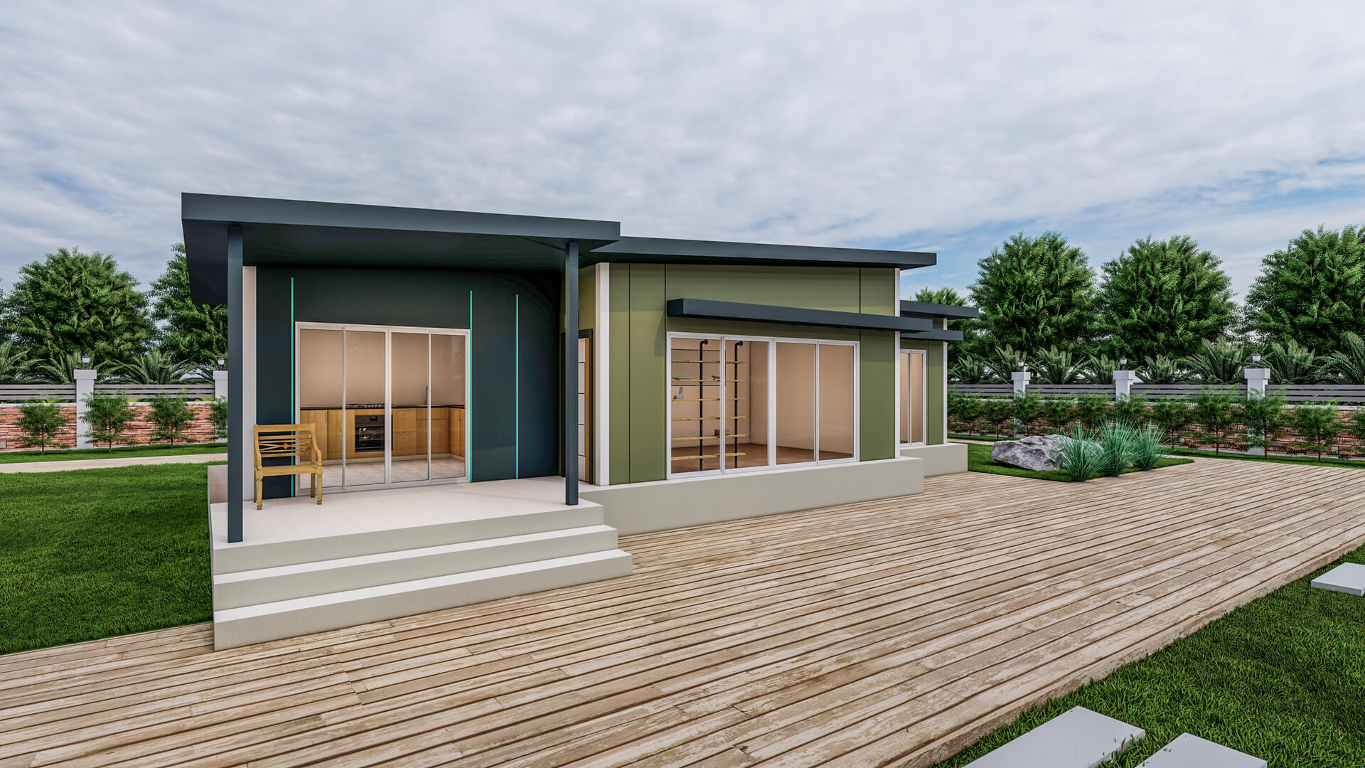 10,5 m² büyüklüğünde tasarlanmış veranda alanı, RP-1100A’nın en dikkat çeken özelliklerinden biridir. Mutfak ile bütünleşik yapısı sayesinde hem yazlık kullanımlar hem de günlük yaşam için keyifli bir dış mekân sunar. Geniş kaydırma kapılar aracılığıyla veranda ile ev adeta tek bir bütün haline gelir.